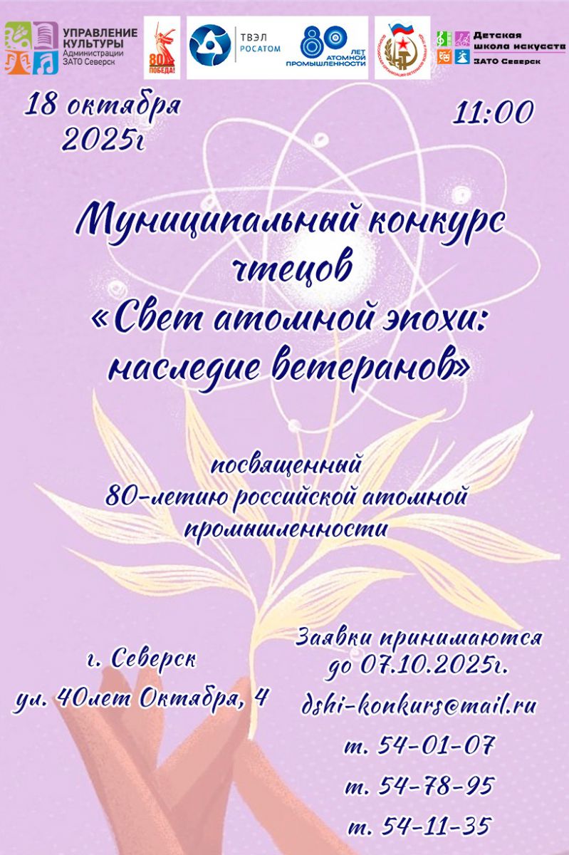 Примите участие в муниципальном конкурсе чтецов, посвященном 80-летию атомной промышленности!03 ноября 2025